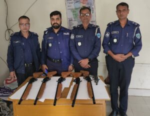 চন্দ্রগঞ্জ থানার বিদায়ী ওসির নেতৃত্বে ৬টি অস্ত্র উদ্ধার